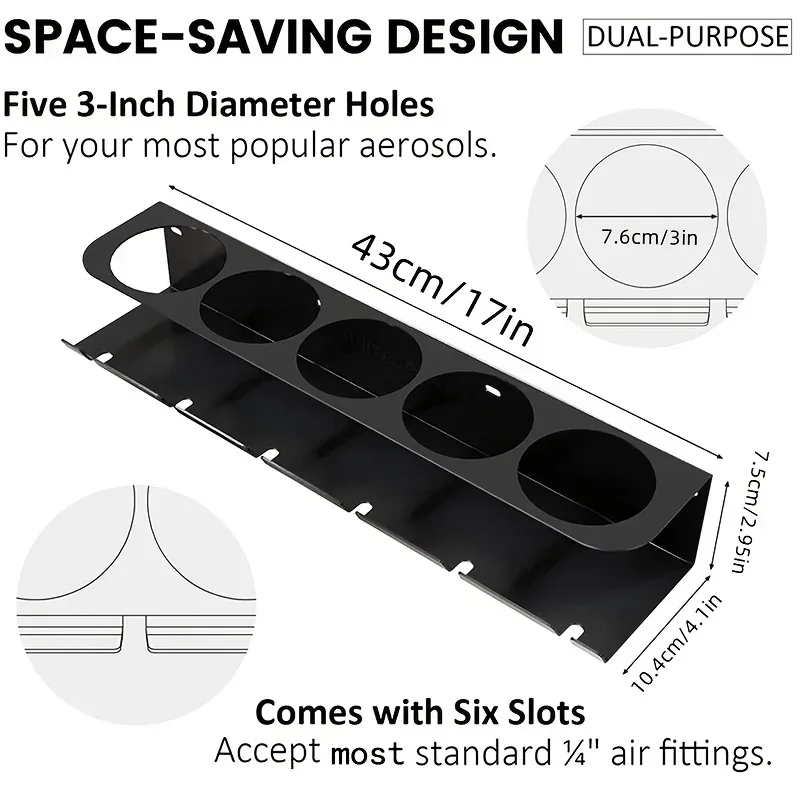 Avec ce support mural métallique pour bombes aérosols, profiter d’un rangement efficace ne prend que quelques minutes. Optimisez votre espace sans effort et assurez-vous que toutes vos bombes aérosols soient toujours parfaitement organisées et accessibles, sans nécessiter de grandes transformations de votre atelier.